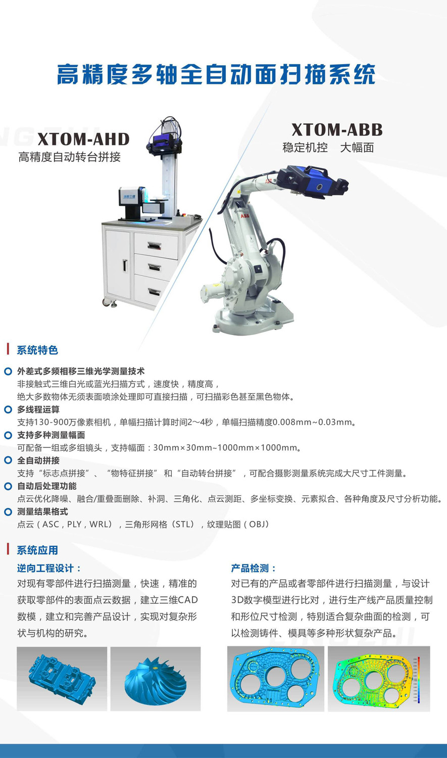 此次博覽會中,領(lǐng)智三維展示了公司新發(fā)布的XTOM-AHD高精度臺式多軸全自動轉(zhuǎn)臺面掃描系統(tǒng),該系統(tǒng)在原XTOM三維光學(xué)面掃描系統(tǒng)的基礎(chǔ)上配備多軸自動轉(zhuǎn)臺,適用于數(shù)碼產(chǎn)品的快速自動化檢測,使測量過程更加智能,測量精度更高。
