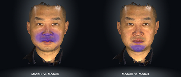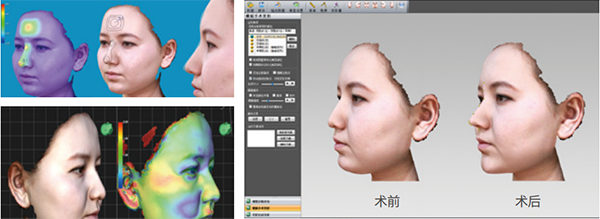 在微整形應用上,數(shù)字化3D模擬整形用于玻尿酸等注射微整,在設(shè)定注射部位的前提下,可估算出劑量及術(shù)后會呈現(xiàn)效果。通過自動將術(shù)前術(shù)后三維數(shù)據(jù)進行擬合對齊,找出差異的部分,用不同的顏色顯示其區(qū)別,并且可以計量出具體數(shù)據(jù)。