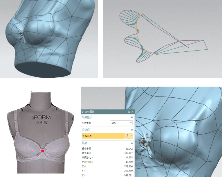 在內(nèi)衣設計應用上,三維人體掃描產(chǎn)品可用于運動文胸設計數(shù)據(jù)采集,設計出更適合體型的個性化文胸產(chǎn)品;另外,采用DIC數(shù)字圖像相關(guān)法技術(shù)產(chǎn)品,結(jié)合高速攝像機可實時采集內(nèi)衣變形階段的圖像,重建出物體表面點的三維空間坐標,計算得到內(nèi)衣受力狀態(tài)下的變形場,有助于個性化定制更舒適、更適合體型的內(nèi)衣。