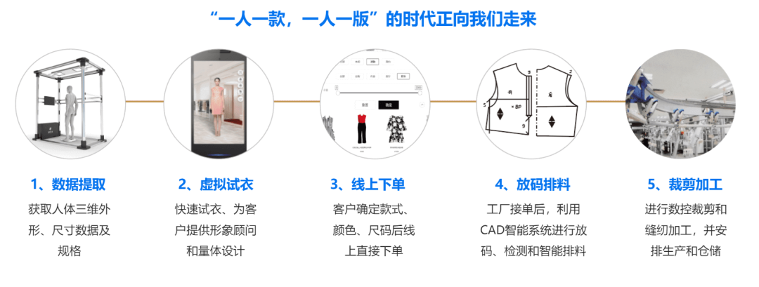 隨著消費升級,小批量、個性化定制將成為服裝行業(yè)一大趨勢。在終端門店虛擬試衣應用上,三維人體掃描產(chǎn)品通過多組攝像頭360度完成人體全身的數(shù)據(jù)采集,無需經(jīng)過傳統(tǒng)手工測量尺寸、縫制衣服、試穿、修改等過程,免去傳統(tǒng)裁縫量體的復雜過程。整個掃描過程全自動完成,3D掃描服裝定制,帶來的體驗更具科技感。