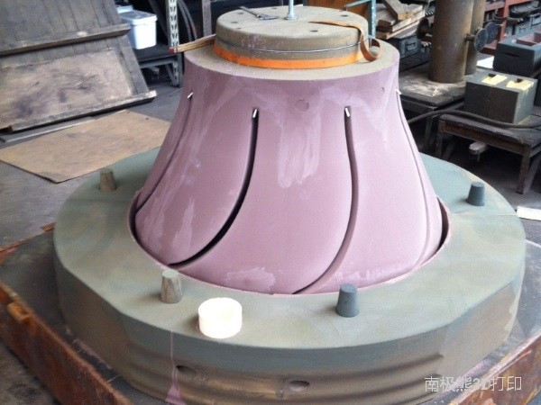 3D打印的鑄造模具特別適合打造金屬樣機(jī)和小批量。下面的圖片是用ExOne S-Max打印出來的一個(gè)?1200毫米泵的砂質(zhì)打印結(jié)果。