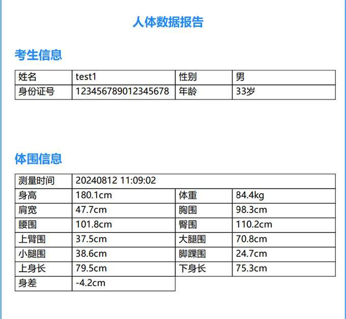 BodyScan形體測(cè)量系統(tǒng),可實(shí)現(xiàn)人體360度全貌的掃描和建模,輸出精準(zhǔn)的藝考量體數(shù)據(jù),通過(guò)對(duì)接全國(guó)藝考服務(wù)應(yīng)用平臺(tái),實(shí)現(xiàn)將藝考量體數(shù)據(jù)自動(dòng)上傳至藝考招生考試系統(tǒng),目前量體數(shù)據(jù)已對(duì)接多地招生考試系統(tǒng)。