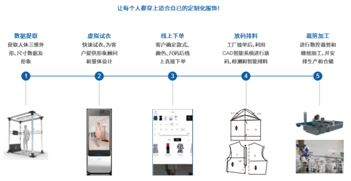 中心提升改造建設(shè)的獲批,將可以更好地實現(xiàn)企業(yè)和高校的資源整合共享、研究合作和技術(shù)推廣,針對傳統(tǒng)服裝服飾行業(yè)的設(shè)計、生產(chǎn)及銷售模式的重點環(huán)節(jié),進行服裝服飾數(shù)字化定制專用設(shè)備開發(fā)、應(yīng)用研究及成果產(chǎn)業(yè)化;在人體快速3D測量尺寸提取、數(shù)字化服裝設(shè)計及專家設(shè)計系統(tǒng)、智能制版、自動裁剪、個性化服裝設(shè)計等重點環(huán)節(jié)展開研究合作,優(yōu)勢互補,打造一個服裝服飾領(lǐng)域數(shù)字化定制、智能工廠的技術(shù)展示及示范推廣平臺。