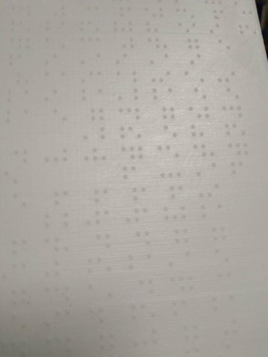 今年12月初,在趙老師的帶領(lǐng)下,團(tuán)隊(duì)成員將陜西省圖書館“視障預(yù)覽室智能讀書機(jī)借閱須知”告示通過盲文轉(zhuǎn)換技術(shù)轉(zhuǎn)換為盲文,同時(shí)還將盲文轉(zhuǎn)換為三維圖,并通過領(lǐng)智三維自主研發(fā)的3D打印設(shè)備,借助增材制造的方式打印出來。